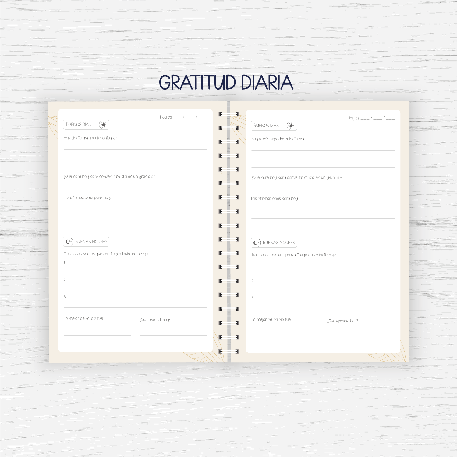 El Diario de Gratitud de PlaniLU es una pausa bonita en medio del ruido. Un lugar íntimo para escribir lo bueno, lo simple, lo que a veces pasa desapercibido, pero también merece ser celebrado. Cada página te invita a conectar contigo, reconocer tus emociones y llenar tus días de intención y amor propio. No necesitas mucho tiempo, solo un momento sincero cada día.